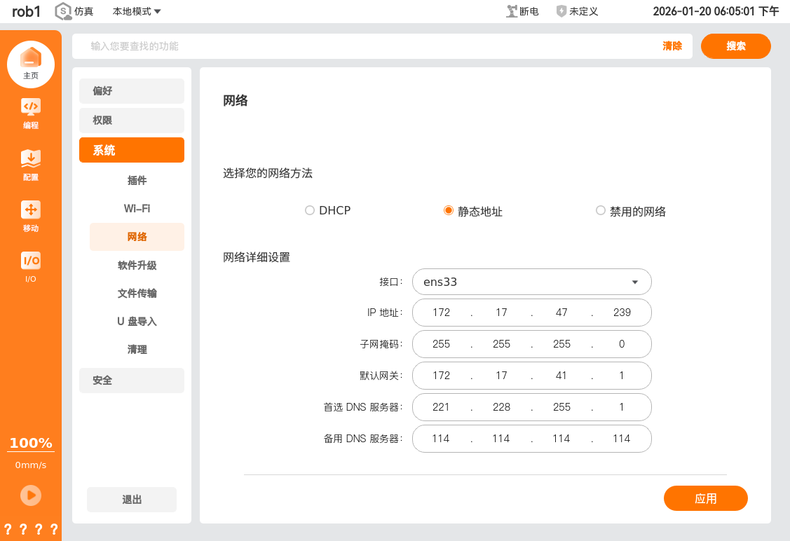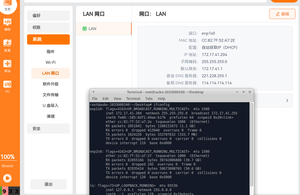 • 排查机器人 IP 地址是否与同一局域网下其他设备 IP 地址一致,是否产生了冲突。