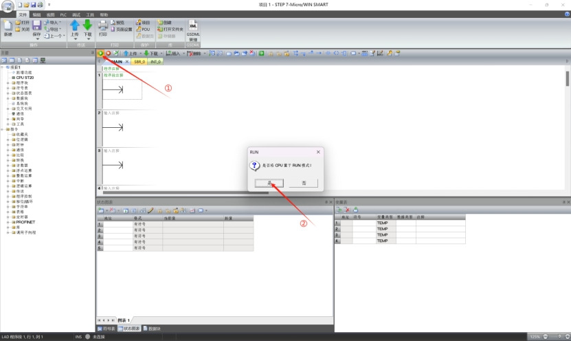 1. 将 PLC 的 CPU 置于 RUN 模式。