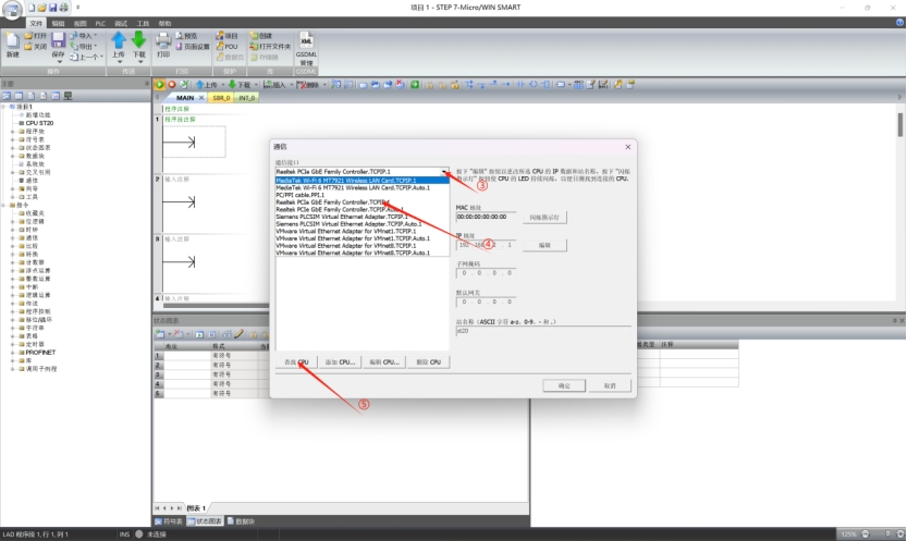 将PLC、控制柜、本机电脑通过交换机连在同一个网络