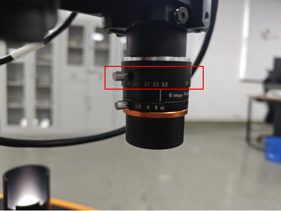 在相机测试界面点击拍照记录按钮可更新相机拍摄的内容,将光源贴近镜头,稍微拧松相机上侧旋钮,并左右旋转焦距环调整焦距,直至拍摄的图像清晰,随后拧紧旋钮。