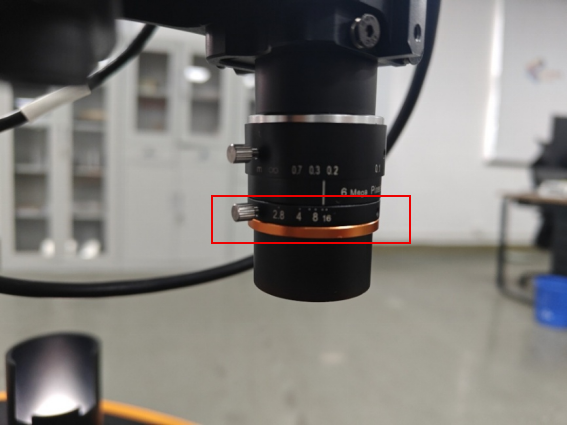 将光源贴近镜头,稍微拧松相机下侧旋钮,并左右旋转光圈环调整光圈,直至拍摄的图像不过暗也不过曝,随后拧紧旋钮。