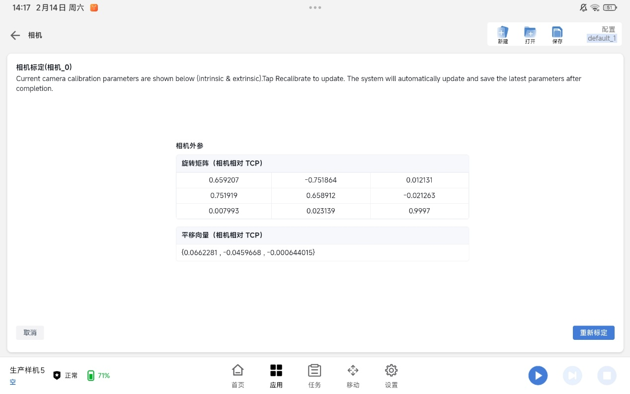 记录足够路点后计算外参并保存标定结果,结束标定。