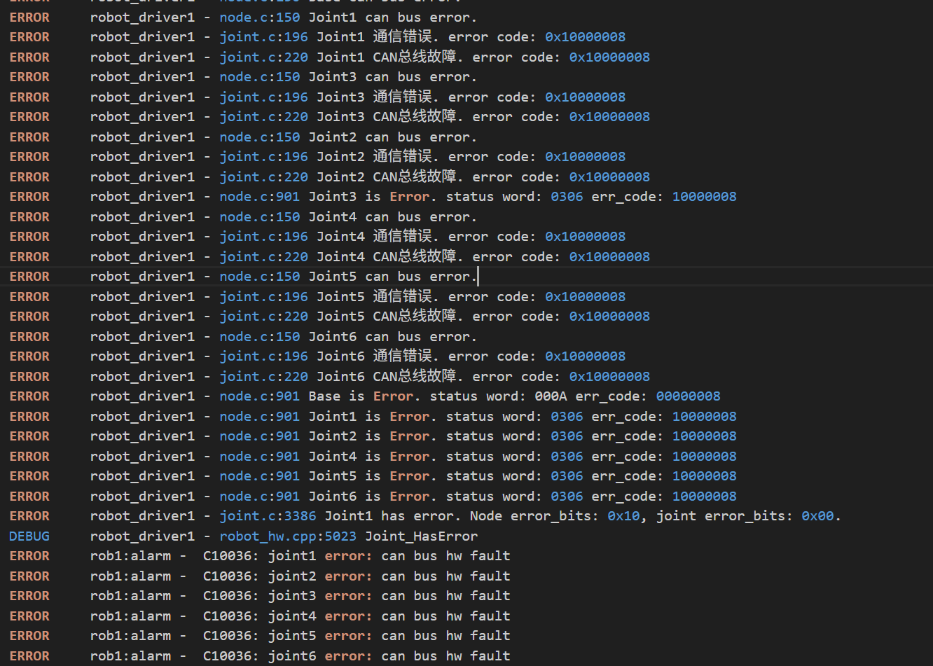 在机械臂的运行过程中,突然弹窗can总线错误,因为硬件排查需要一定的硬件知识以及一些额外工具,这里尝试从软件以及日志层面给大家讲一下排查步骤。