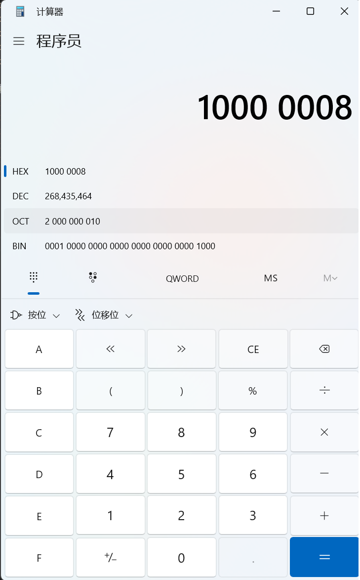 可以看到二进制下,第3个bit和第28bit的值为1(从0开始),即代表