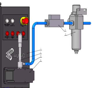 3. 所有气管接头处需用生料带逆时针缠绕螺纹,再拧紧。