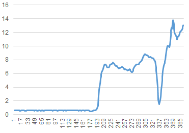• 不施加力,机械臂运动到 390 左右停下,然后处在弹簧状态 。