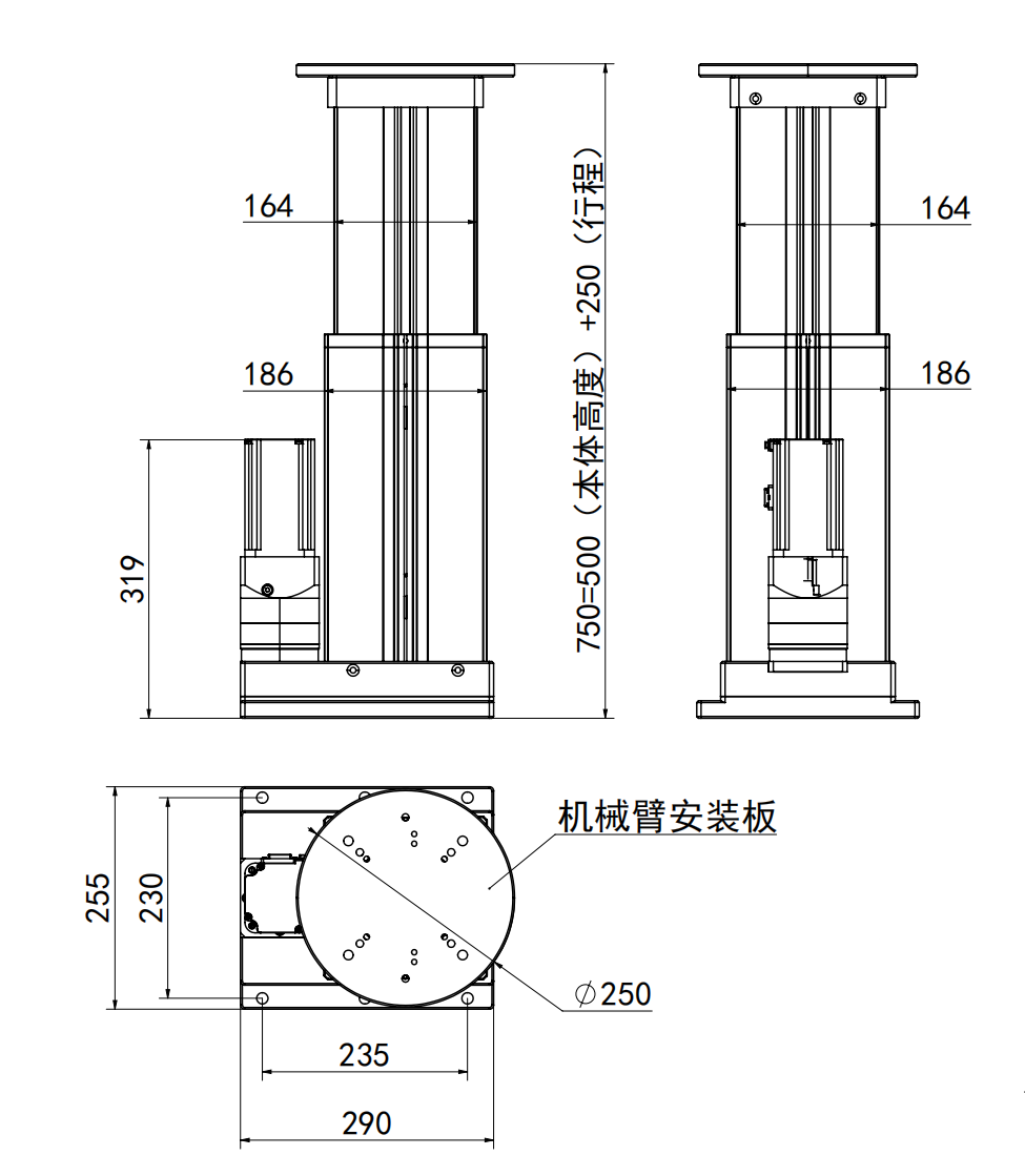 | 自动升降柱 | 本体高度:500mm 行程:250mm 速度:0-50mm/s 负载:1000N 信号类型:EtherCAT |
