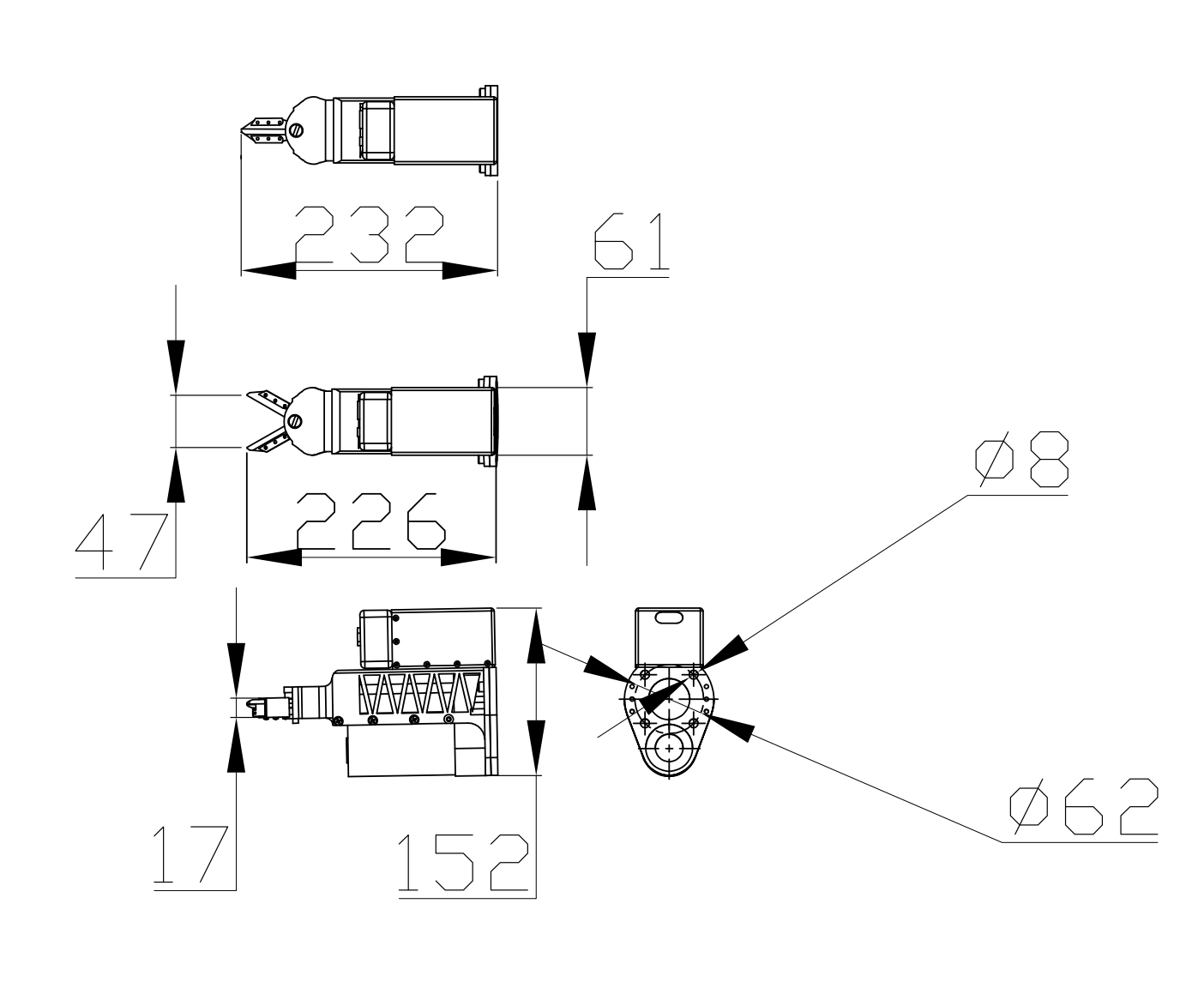 | 末端执行机构 | 气动剪刀 电动剪刀 |