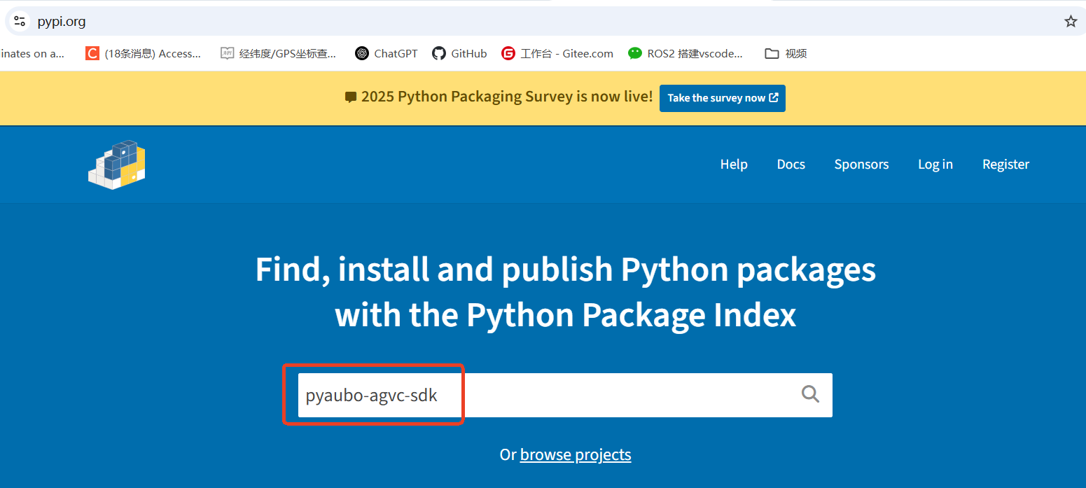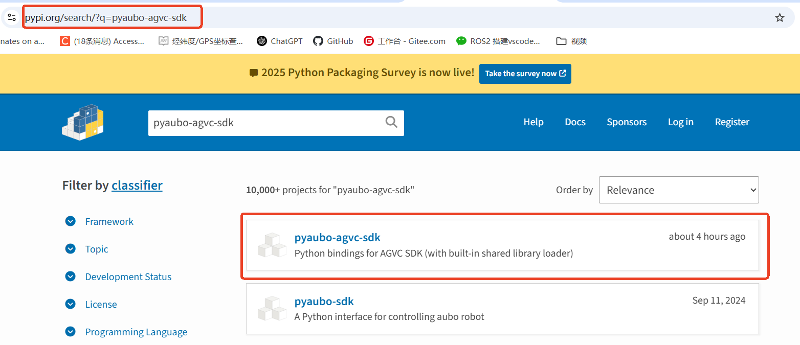 - 搜索“pyaubo-agvc-sdk”,选择版本后点击