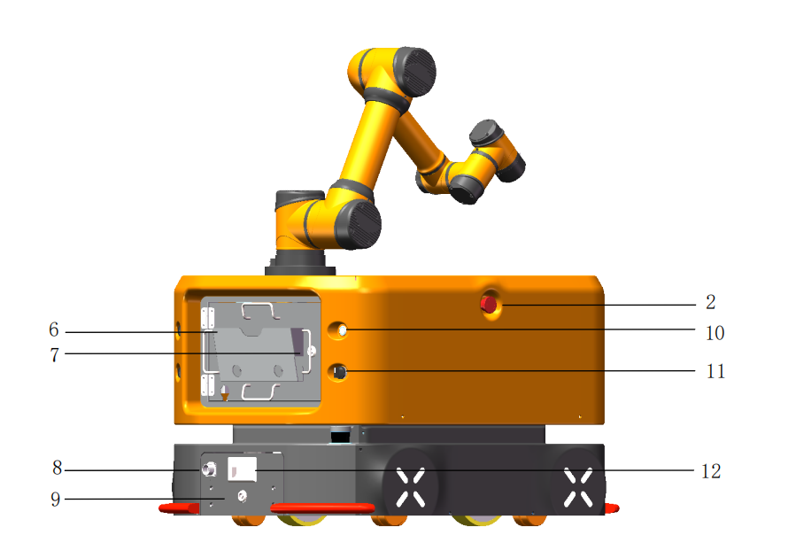AGV 底盘上右侧,正面,左侧各配有外接紧急停止按钮端口,集成商或用户可根据实际情况使用。