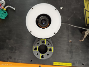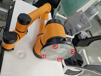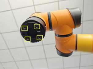 - 使用 M6×14mm 的圆柱头内六角螺丝(图 12)将相机模块安装到机械臂法兰(法兰安装孔见图 13,相机螺丝孔见图 14),安装完成如图 15。