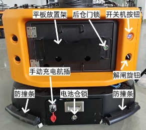- 手动充电口:手动充电口位于移动底盘后部,如图 4,用于连接手动充电器进行手动充电。