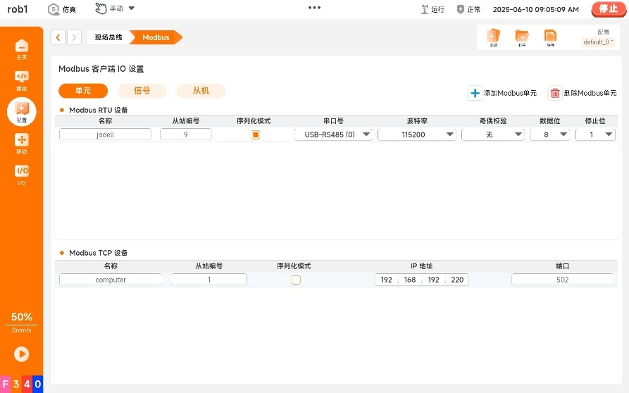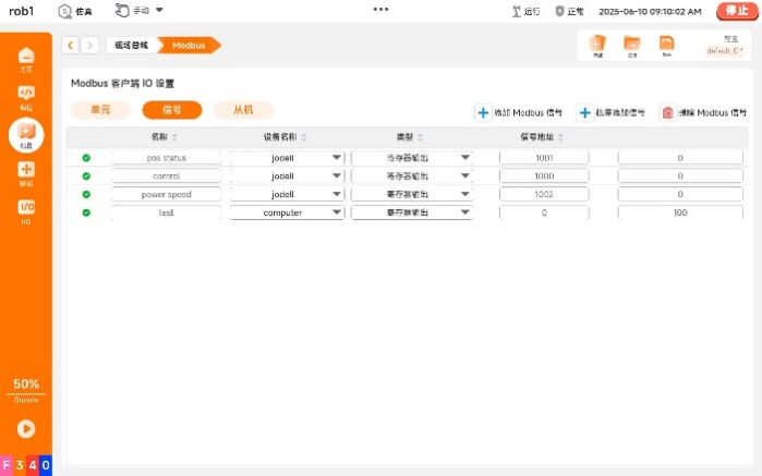 aubo_studio 上建立 ModbusTCP 连接,APP 作为主站连接电脑从站。