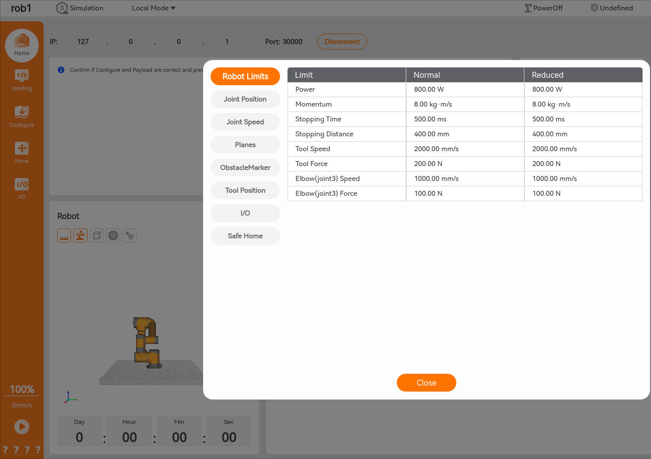 After changing the safety configuration, click the [Apply] button. The system will then display a pop-up window prompting users to confirm the changes and show the current safety configuration information for users to check. Once confirmed, the robot will be powered off, and the changes will be automatically saved to the current safety configuration file.