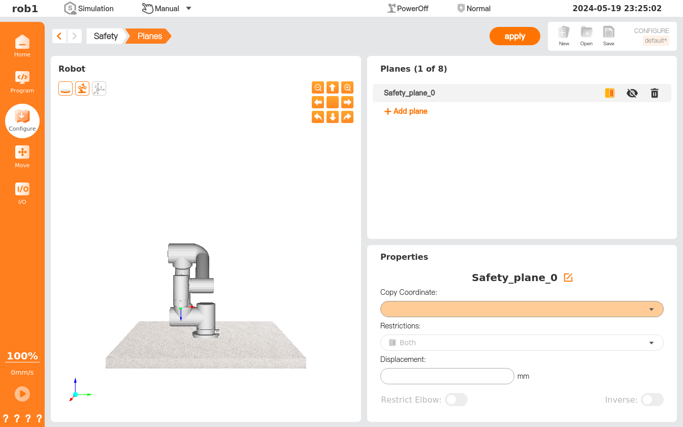 In the [Planes] page, users can set the safety plane.