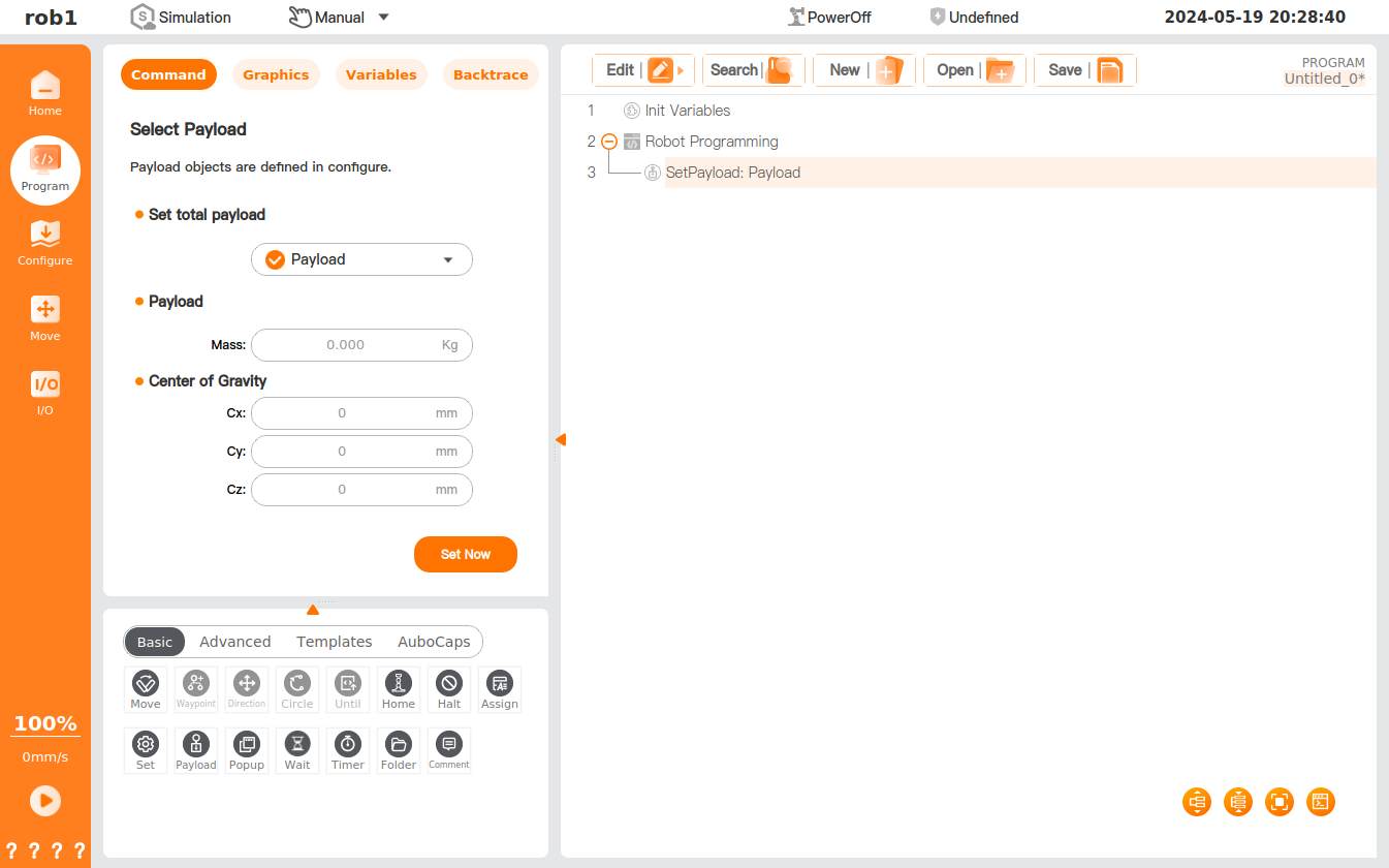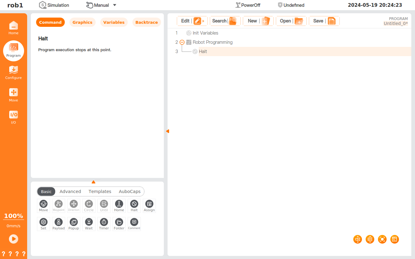 - Wait: The robot is programmed to wait for the set duration before resumed operation.