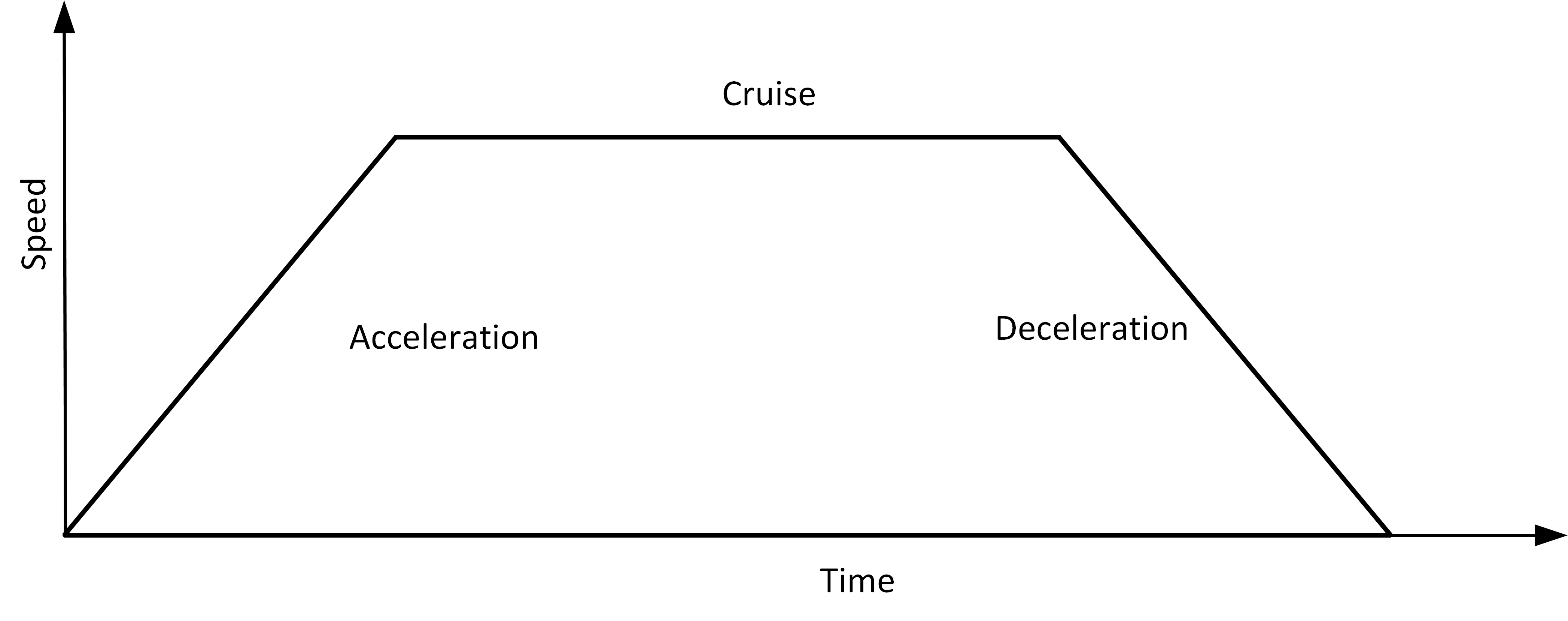 The movement speed curve of the robot is divided into three parts: acceleration, cruise, and deceleration. The movement speed parameter determines the cruise, and the acceleration parameter determines the acceleration and the deceleration gradient, as shown in the figure.