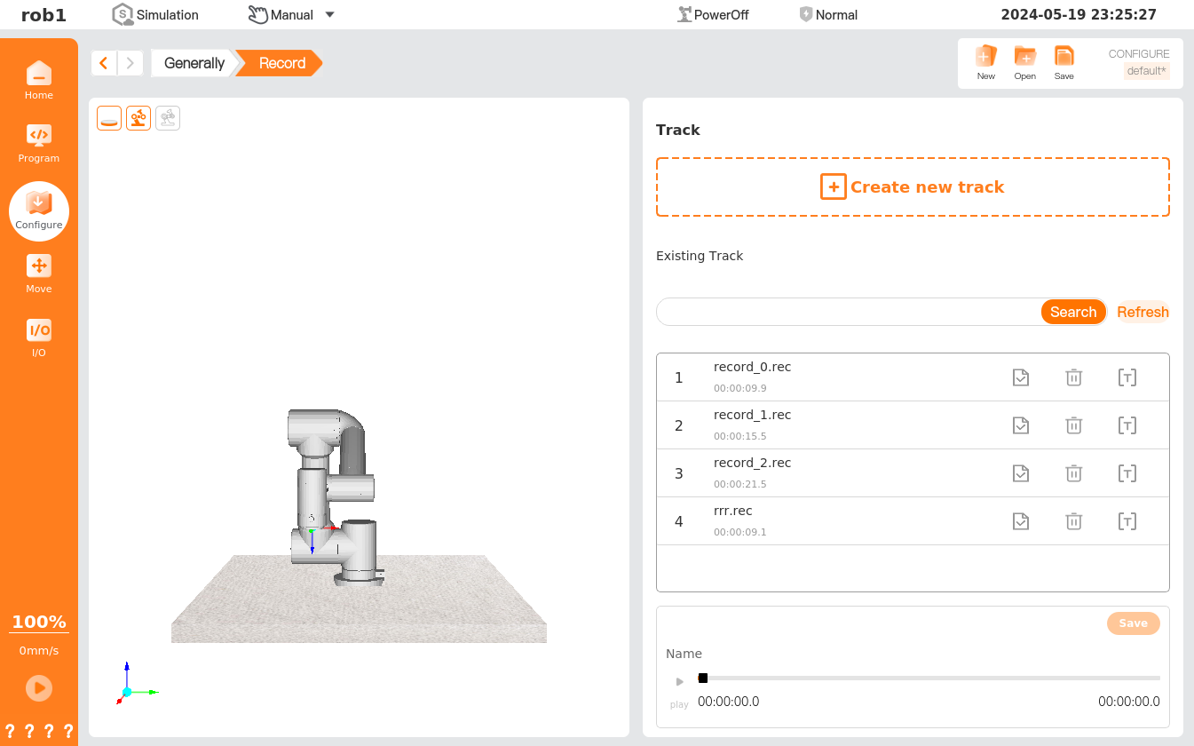 The [Record] page stores the tracks of robot movement for a period of time, and the stored tracks can be added to the program.