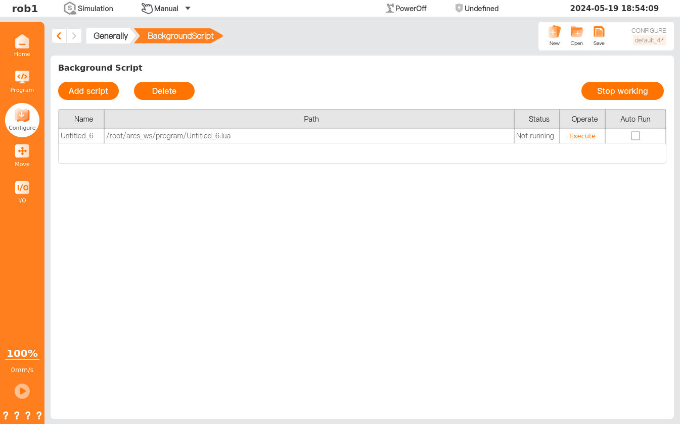 1. When automatic robot connection, automatic power-on, and automatic loading are enabled, the robot runs the program immediately after the controller is powered on, provided that the input signal matches the selected signal level. For example, in the case of low level, it is no need to transit an edge level to the selected signal level.