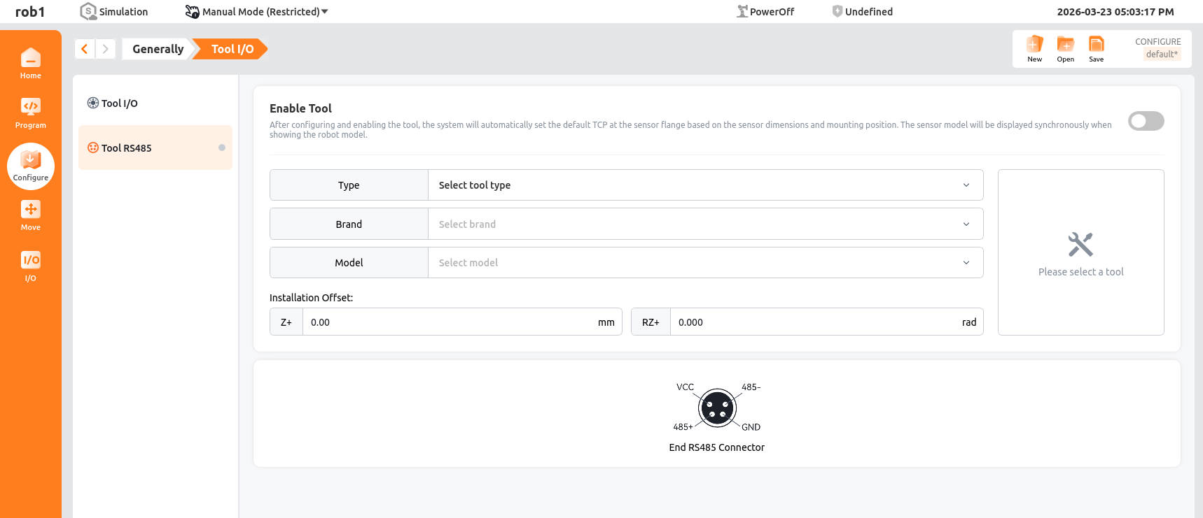 Tool RS485 interface