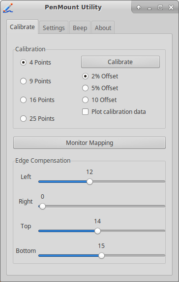 单击 “Calibrate”,在 “Calibration” 中选择测试点位数量。目前有 4、9、16、25 四个选项,点位越多屏幕校准越精准,推荐使用 4 或 9 个点位。