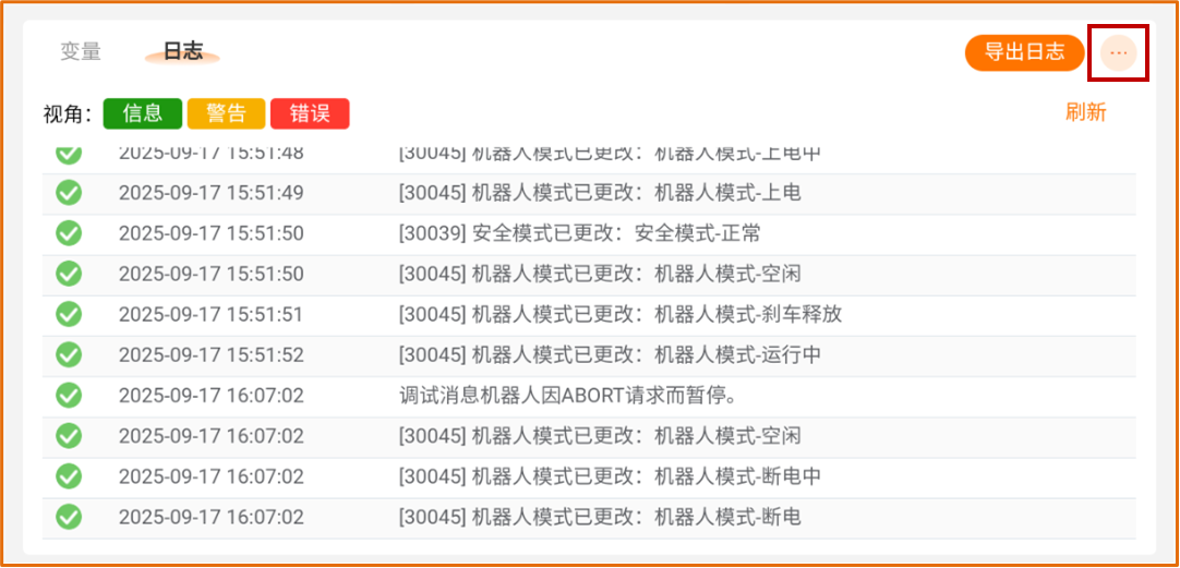 在 ARCS 系统中,ARCS 系统日志存储在控制器系统内,安卓版客户端日志则保存在平板中。为方便用户查看、分析和导出日志,遨博推出 “日志中心” 功能。
